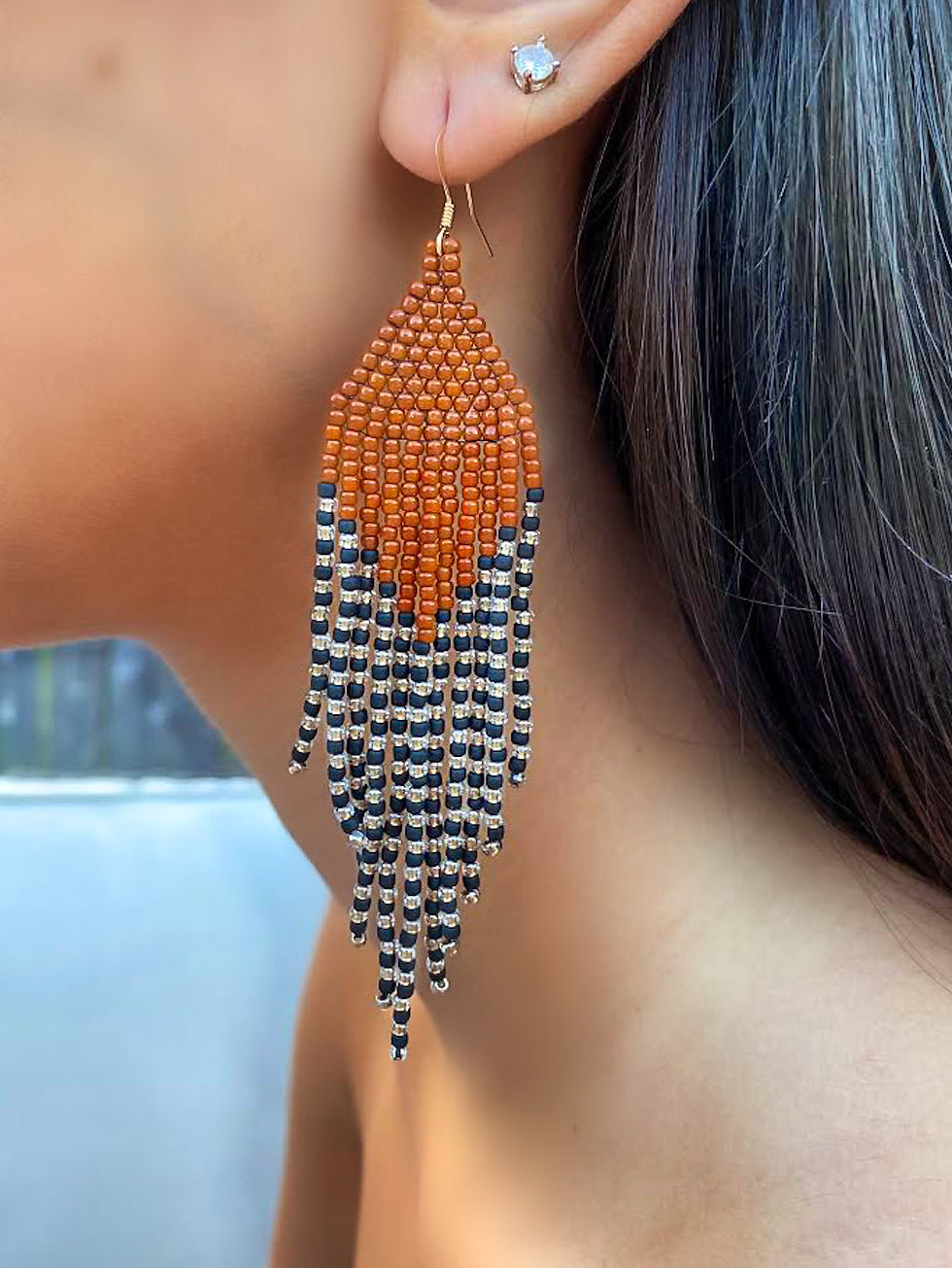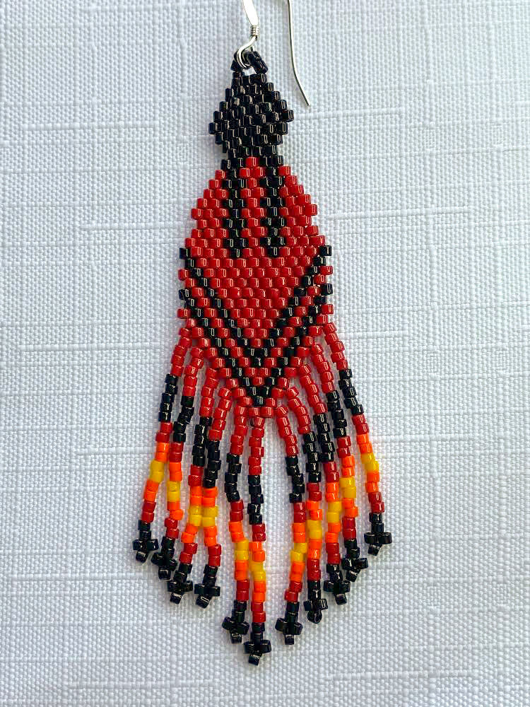 Cream, Black, Red, Orange and Yellow Loop Beaded Earrings