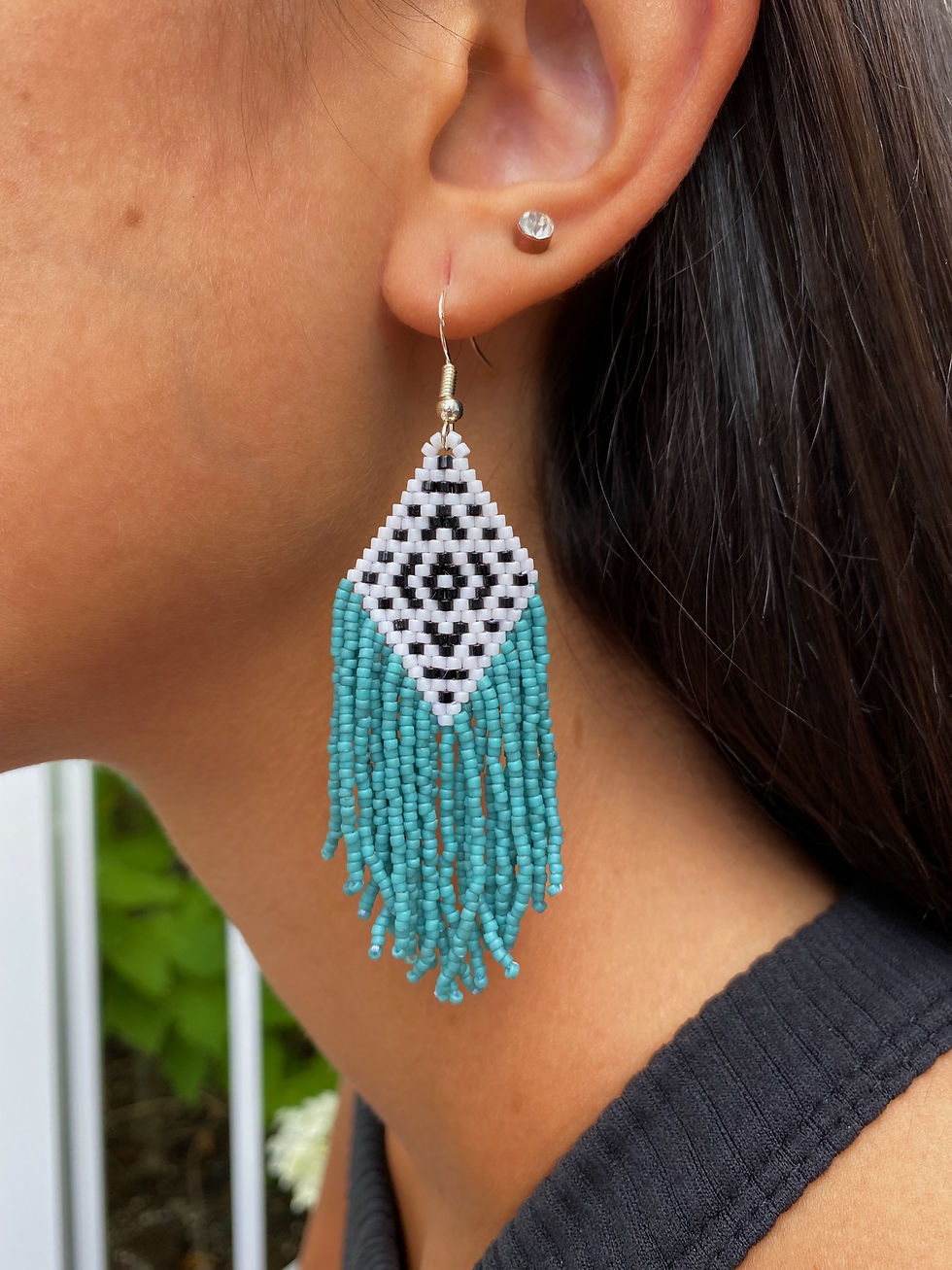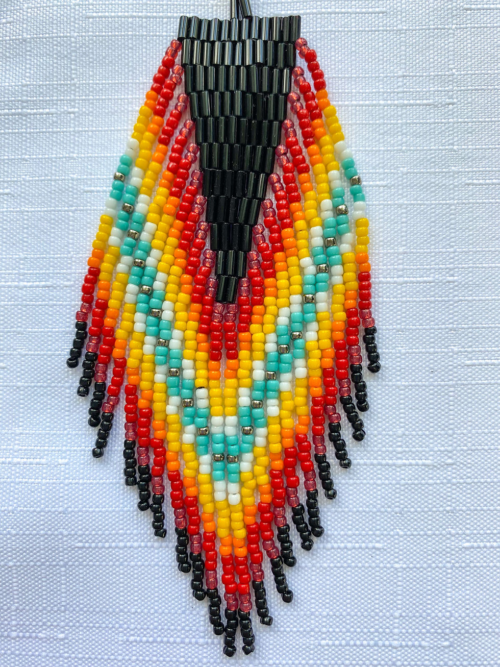 Black, Red, Turquoise and Gold Beaded Fringe Earrings